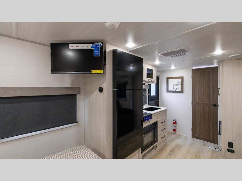 Sleeps 3 Slides 1 Length 25 ft 1 in Ext Width 8 ft Ext Height 11 ft 3 in Hitch Weight 497 lbs GVWR 7497 lbs Dry Weight 4931 lbs Cargo Capacity 2566 lbs Fresh Water Capacity 40 gals Grey Water Capacity 40 gals Black Water Capacity 30 gals Available Beds Queen Refrigerator Type 12V Black Glass Refrigerator Size 10 cu ft Cooktop Burners 3 Number of Awnings 1 Water Heater Type Tankless AC BTU 15000 btu TV Info LR HD TV Awning Info 16' Electric w/LED Light Strip Axle Count 2 Shower Type Standard Electrical Service 30 amp Solar Wattage 200 watts Similar Floorplans