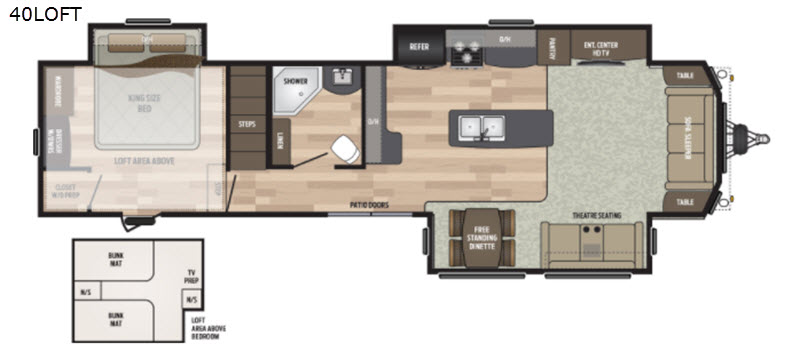 If you have been dreaming about a second home on a lake for you and your family, this Residence destination trailer is the perfect choice! This model offers everything you will need in a getaway oasis, like the king-size bed in the private bedroom that has its own exterior entrance door so that you can slip in and out without waking other campers. The kids will certainly love spending their nights sleeping in the loft, and your guests will sleep comfortably on the sofa sleeper in the front living area. You will find the 60" dual pane sliding glass doors provide additional natural light and a beautiful view of outside.